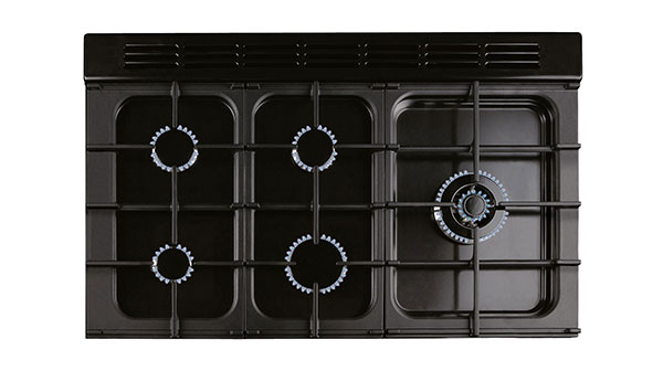 Gazowa płyta z podziałem na cztery mniejsze palniki oraz jeden większy, który umożliwi nam smażenie w naczyniu o dużych rozmiarach. Szybki demontaż obręcz.
