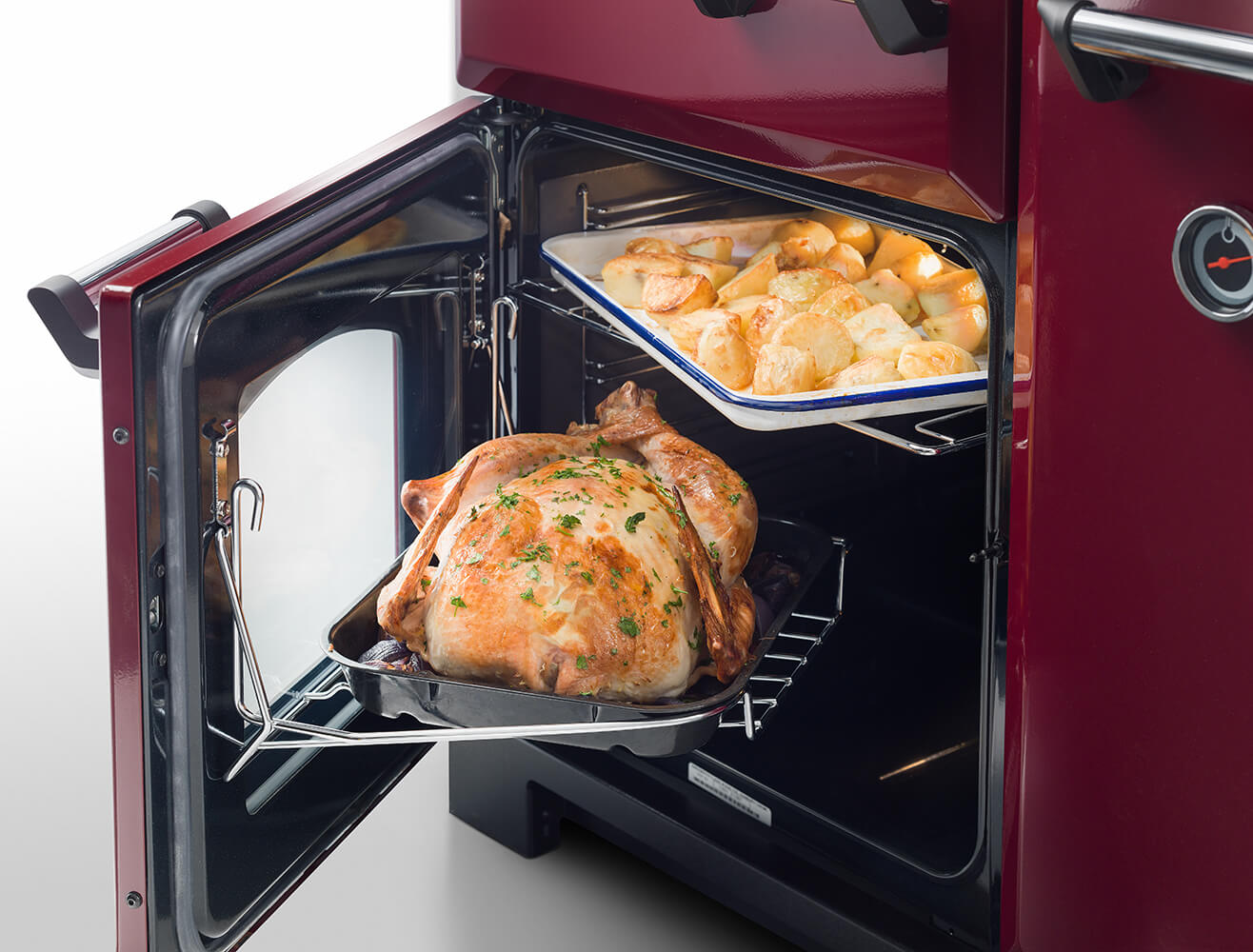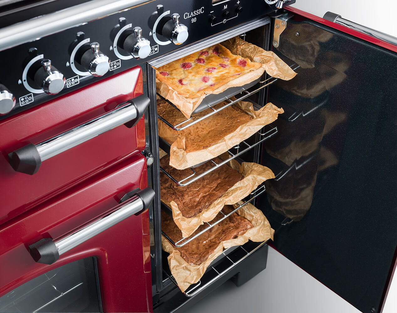 Falcon Classic posiada duży piekarnik z możliwością doglądania potraw dzięki uroczemu okienku. Praktyczny grill, oraz cztero-poziomowy piec konwekcyjny z wbudowanym termometrem po zewnętrznej stronie drzwiczek.
