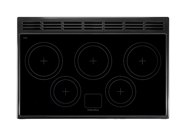 Płyta indukcyjna posiada pięć stref do gotowania. Każde pole jest sterowane za pomocą chromowanego pokrętła z przodu kuchni. Wszystkie strefy grzewcze mają funkcję automatycznego podgrzewania oraz zwiększania mocy. Ponadto płyta jest bardzo łatwa w utrzymaniu czystości, odporna na zarysowania.